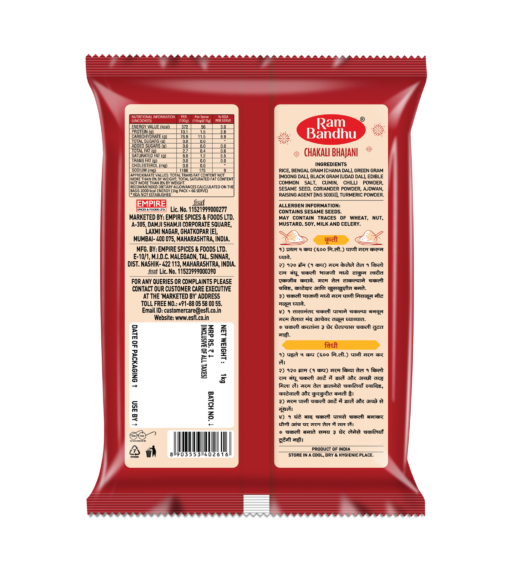 Rambandhu’s Chakali Bhajani Pith is chakali pith which comes with all necessary spices blended in it to bring the one step time saving convenience to the whole chakali (a.k.a. Murukku) making ritual. It is the convenient way of making delicious chakalis which crackle with every bite.