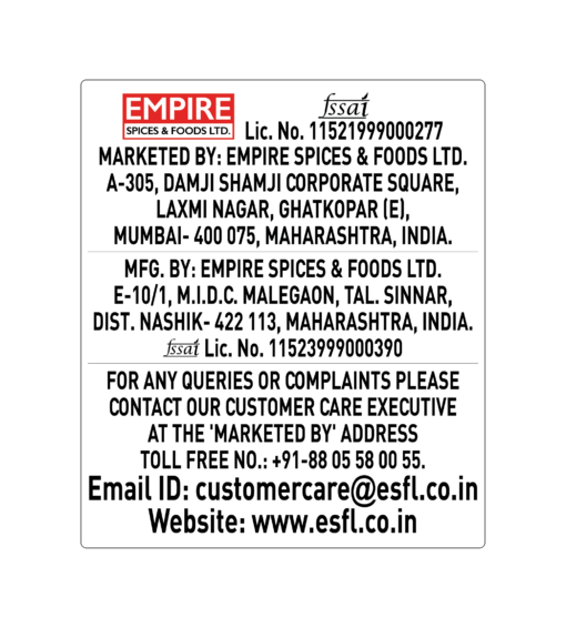 Shelf life: | Mentioned In Pack Sizes Drop Down Menu |
