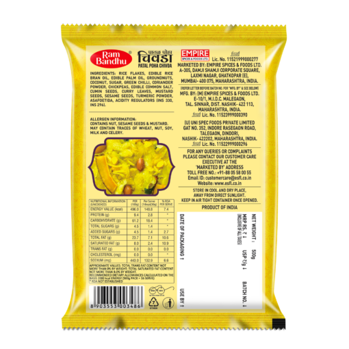 Lipsmacking ready to eat chivda made from patal poha. Made with Ram Bandhu’s iconic chivda masala tailored for patal poha this snack is the epitome of traditional Indian cuisine